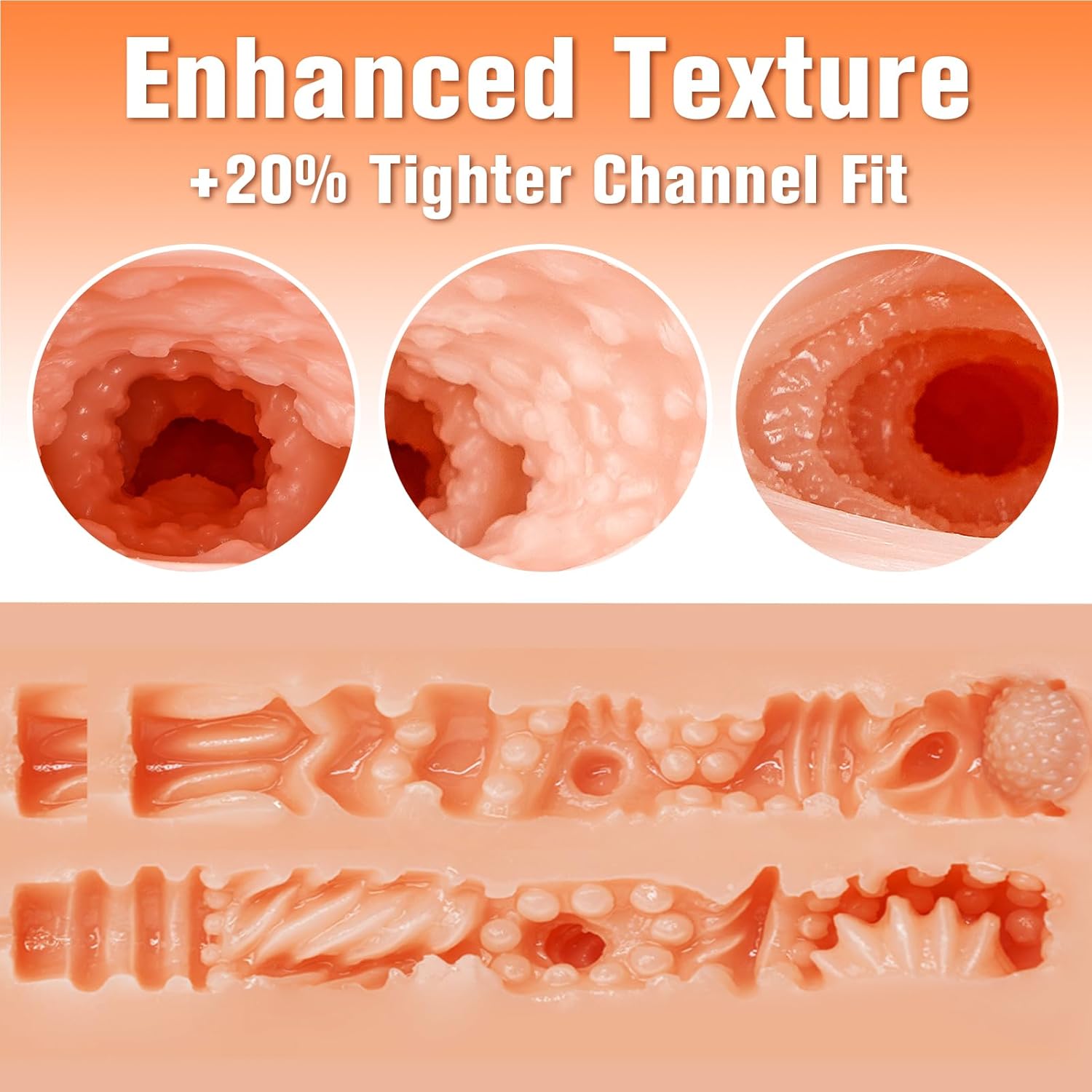 This male stroker has up to 5.12 in of insertable length, the adult toy come with realistic anal and vaginal channels, with lifelike textures and contours inside to provide an authentic experience. Order Now !